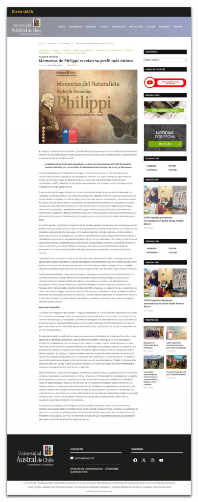 En Medios: “Memorias de Philippi revelan su perfil más íntimo”. Diario UACh. 6-10-2025