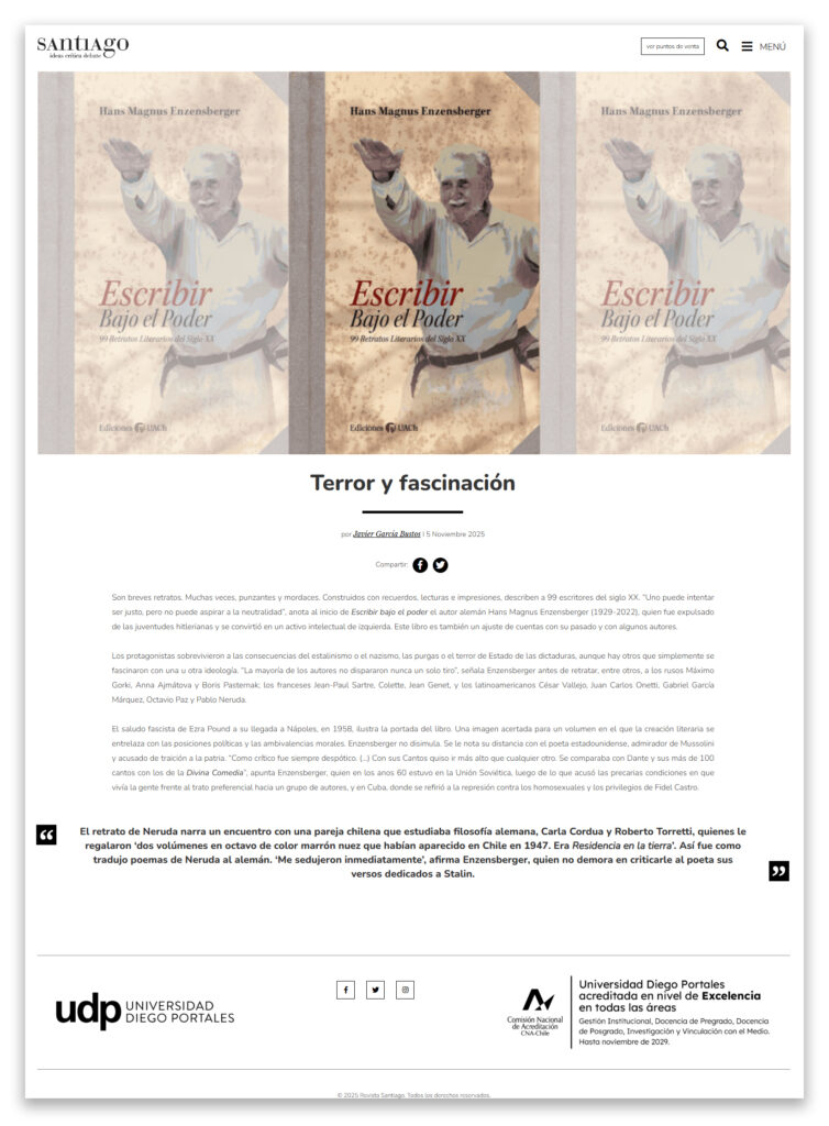 En Medios: “Terror y fascinación”. Revista Santiago: ideas-crítica-debate. 5-11-2025