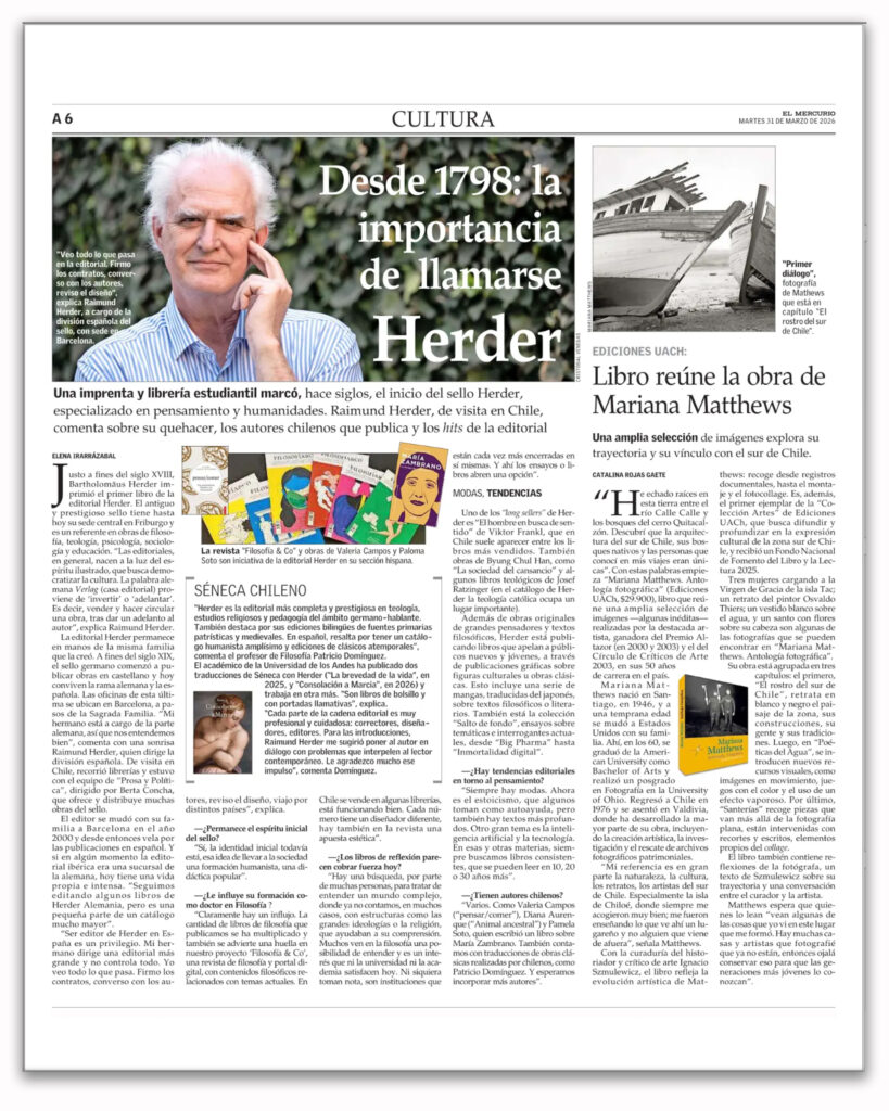 En Medios: “Libro reúne la obra de Mariana Matthews”. El Mercurio. 31-03-2026