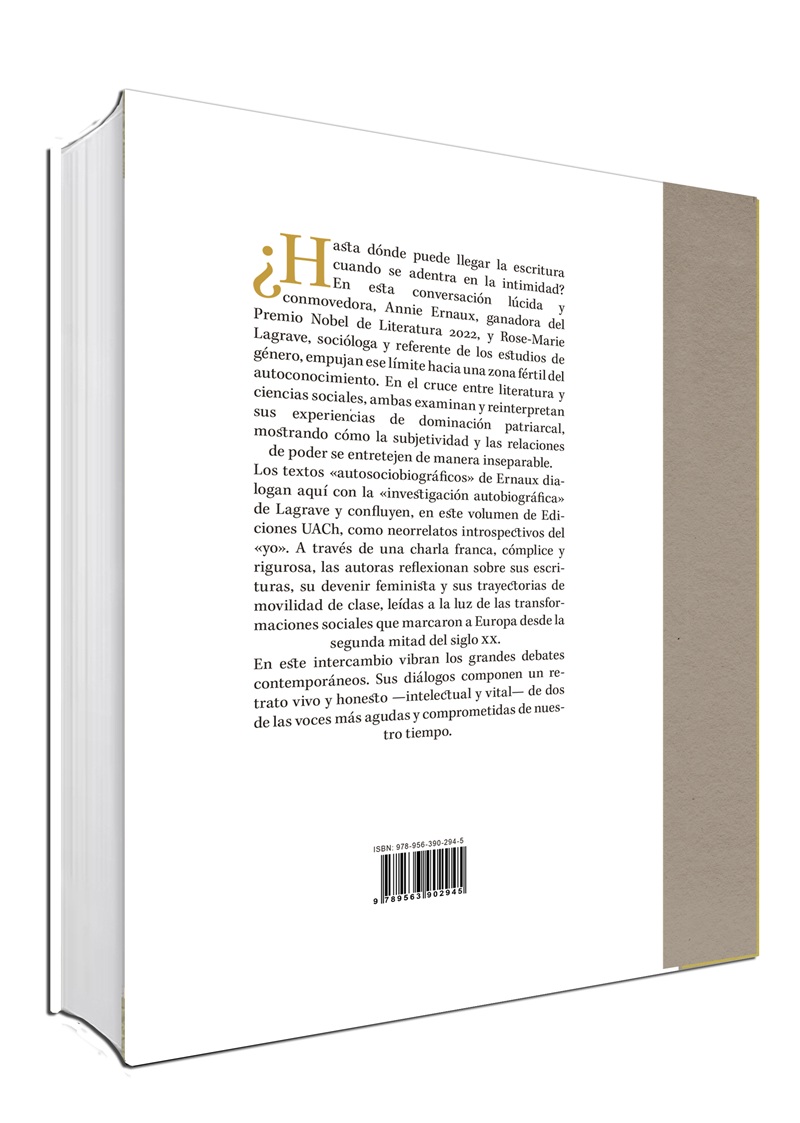 Los textos «autosociobiográficos» de Ernaux dialogan aquí con la «investigación autobiográfica» de Lagrave y confluyen, en este volumen de Ediciones UACh, como neorrelatos introspectivos del «yo». A través de una charla franca, cómplice y rigurosa, las autoras reflexionan sobre sus escrituras, su devenir feminista y sus trayectorias de movilidad de clase, leídas a la luz de las transformaciones sociales que marcaron a Europa desde la segunda mitad del siglo XX.
