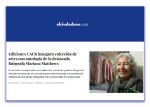 En Medios: “Antología de la obra fotográfica de Mariana Matthews inaugura colección Artes de Ediciones UACh”. Diario UACh. 24-12-2025
